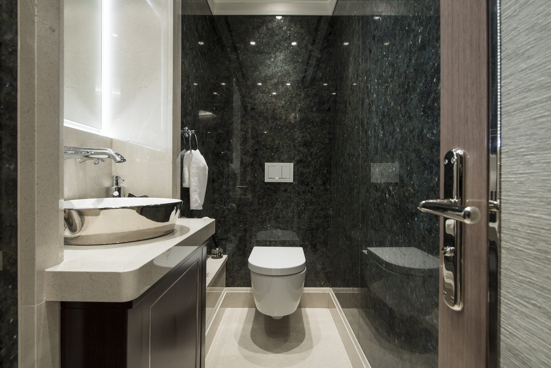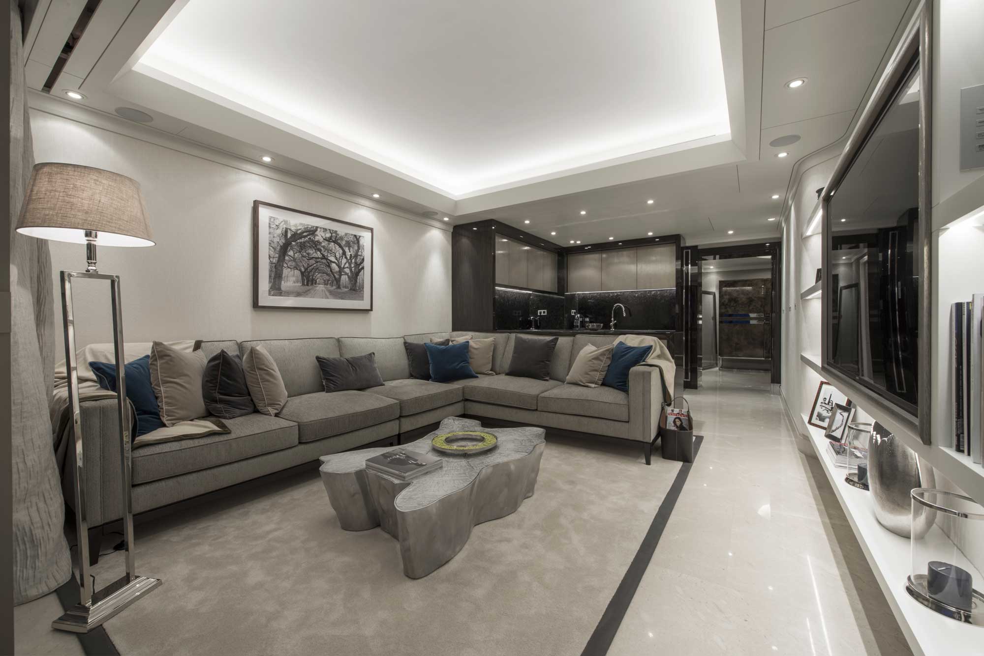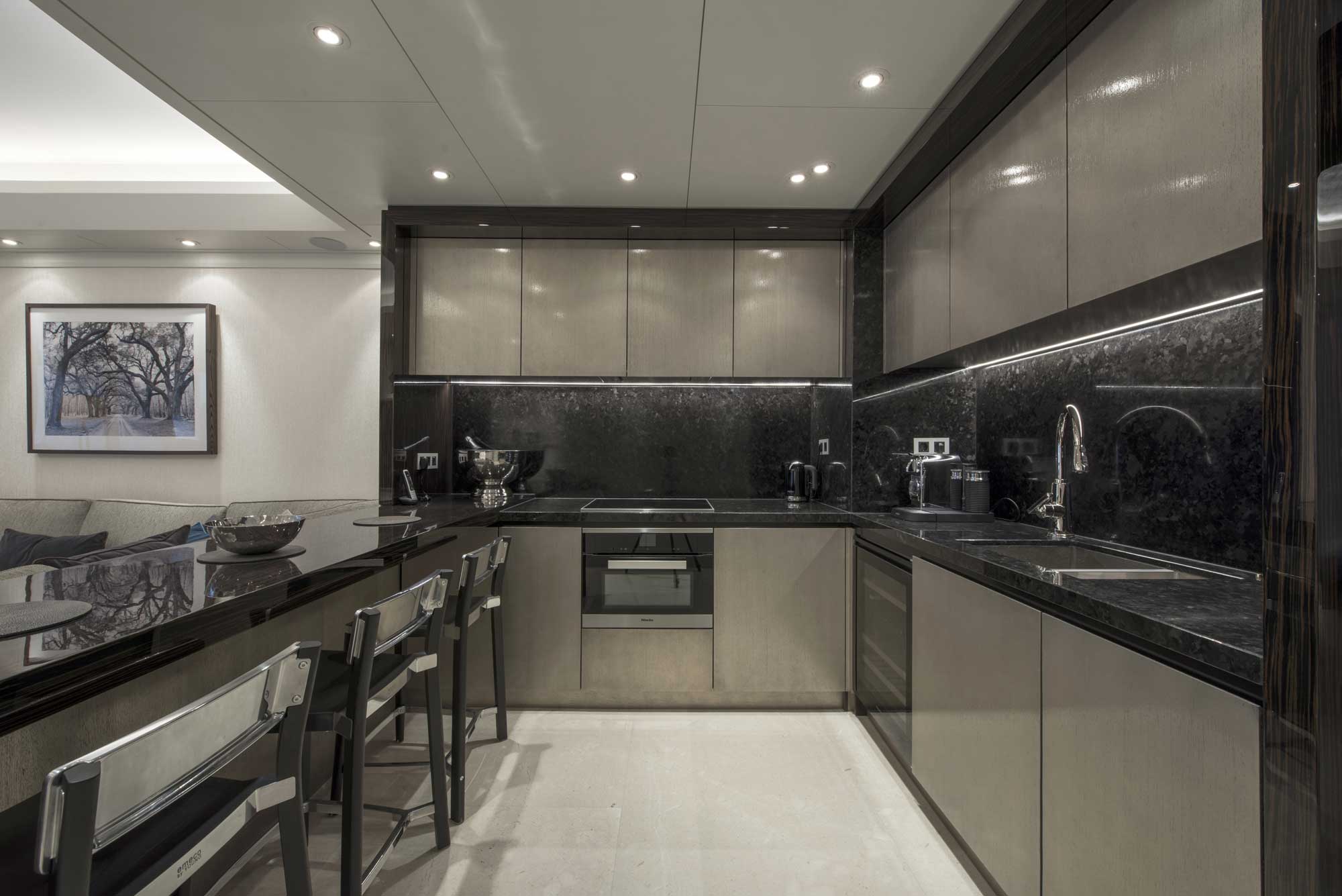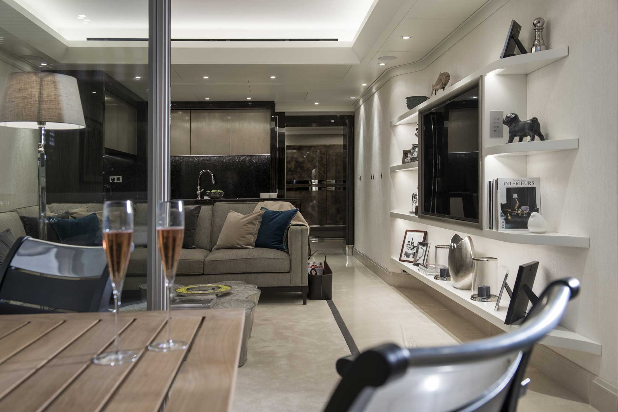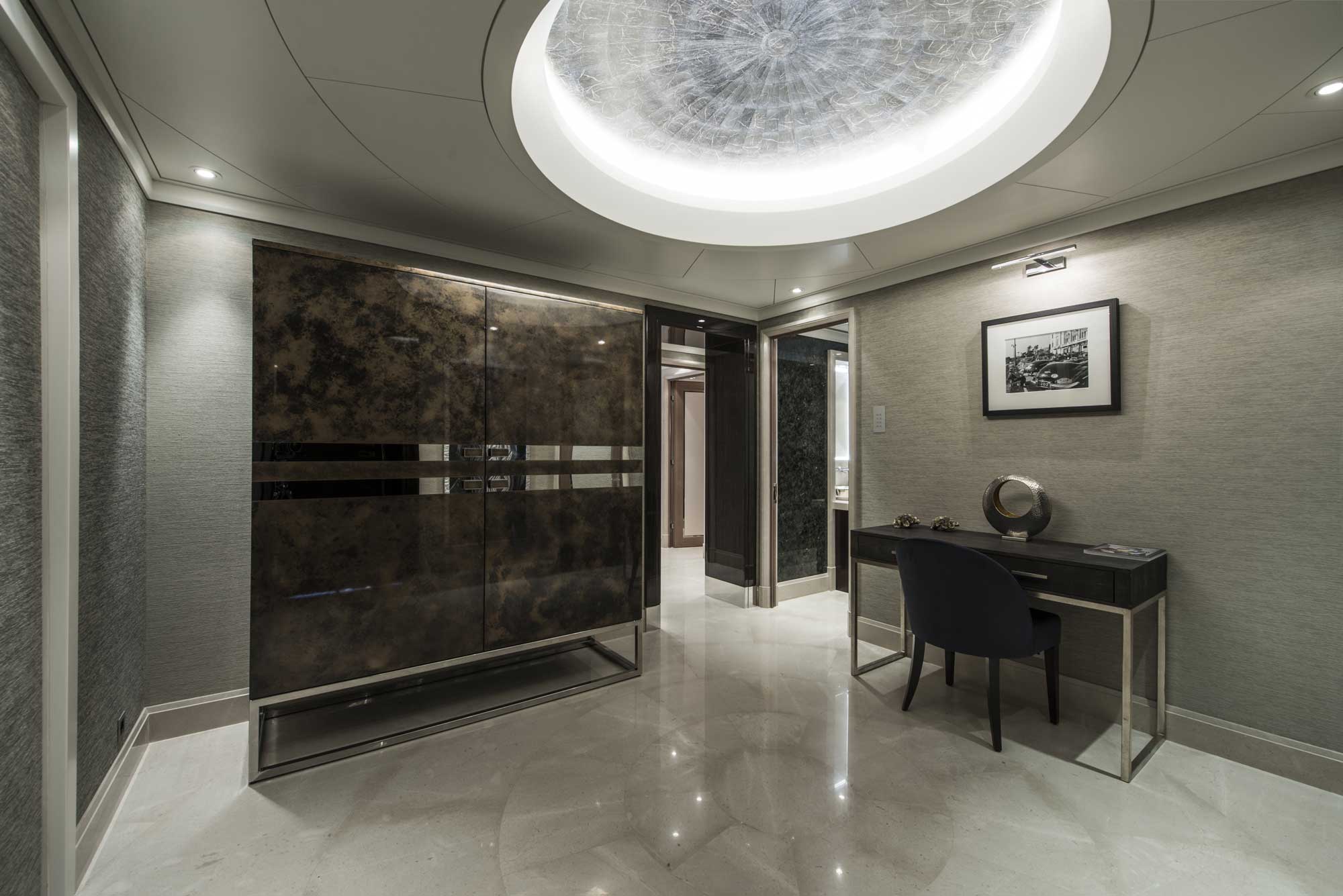 Der Park Palace wurde von Eidsgaard Design im Stil einer Yacht designt. MVS setzte den schlüsselfertigen Innenausbau in Monte Carlo auf 150 Quadratmetern 2015 um.